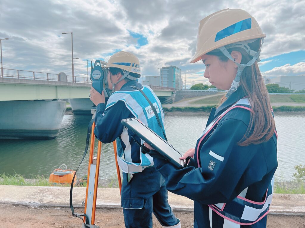工事施工に係るデータ処理やICT業務を担う、『建設ディレクター』という新たな職種を導入し、現場技術者の書類業務等をワークシェアすることにより業務の効率化を図っています。3次元設計データを用いたICT施工や、ウェアラブル端末を駆使した遠隔臨場など、DXによる技術の活用を推進し、建設工事の品質向上や生産性向上を実現しています。